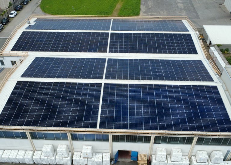 Un impianto fotovoltaico converte la luce solare in energia elettrica, utilizzando celle fotovoltaiche per generare corrente.